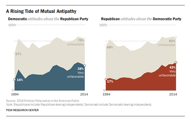 Repeat after me (and French): "Partisan Americans like each other less and less."