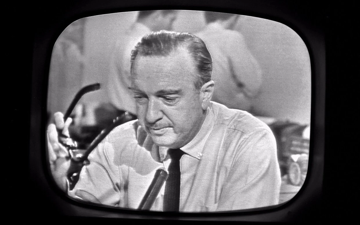 MAIN IMAGE: Screenshot from the live broadcast in which Walter Cronkite, as the CBS News anchor, announced the death of President John F. Kennedy.